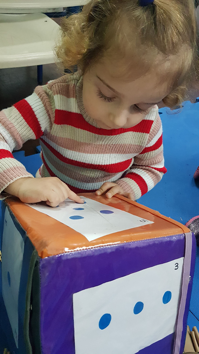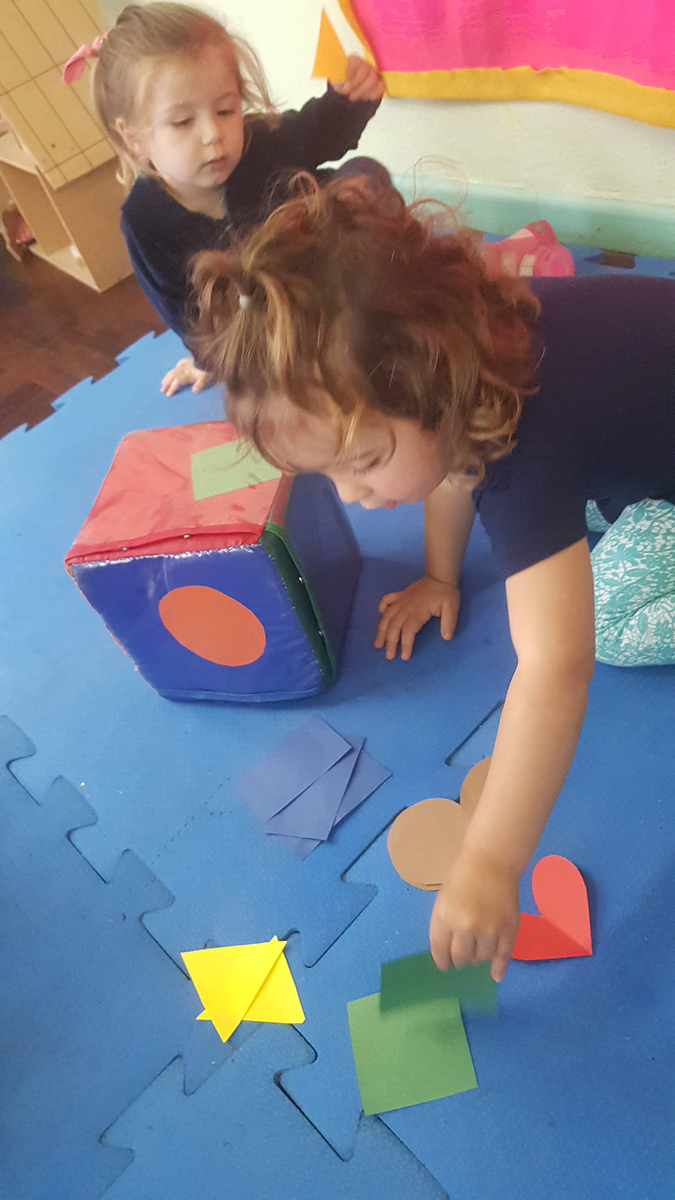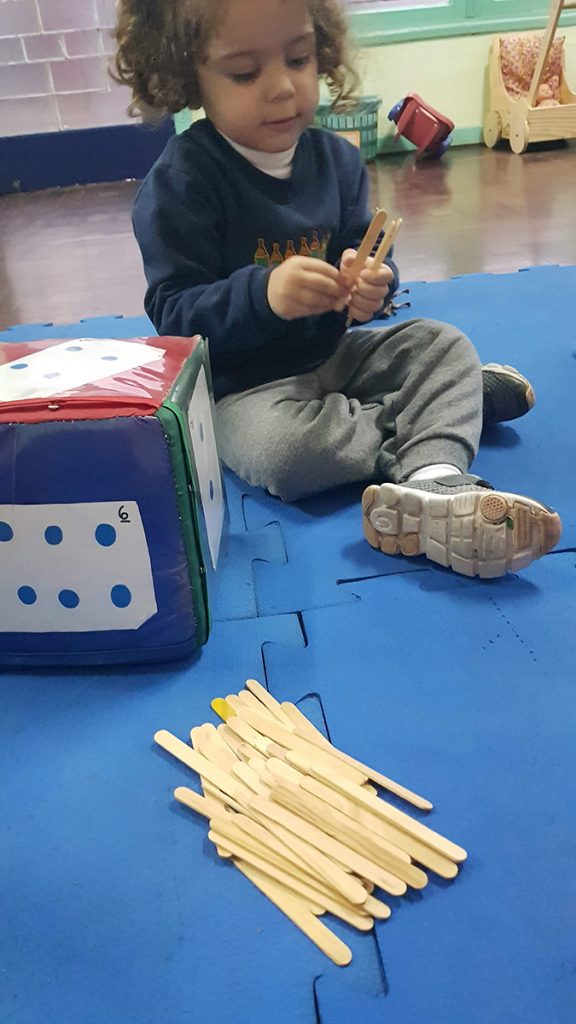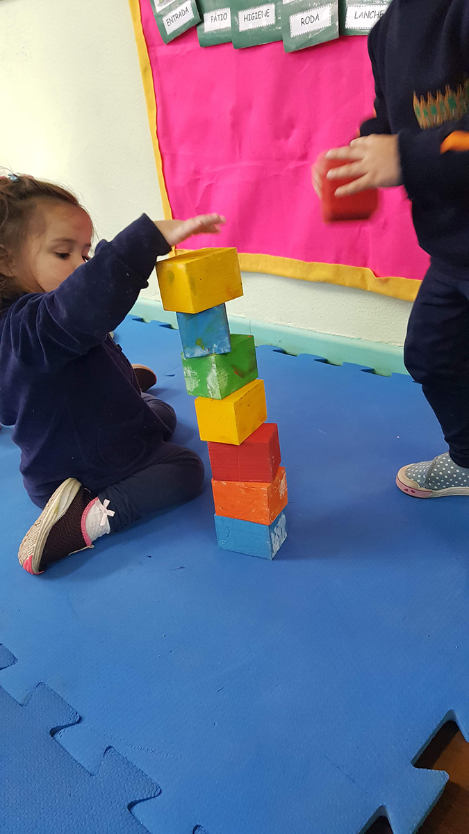 No minigrupo também encontramos diferentes formas de brincar com a matemática, como por exemplo: jogos de quebra-cabeça, memória, figuras geométricas, cores e números. Todos os jeitos as crianças desenvolvem a atenção e o raciocínio lógico, podendo classificar e seriar os objetos, realizar a correspondência termo a termo, contar oralmente e quantificar, da mesma forma que expressar suas ideias enquanto exploram.