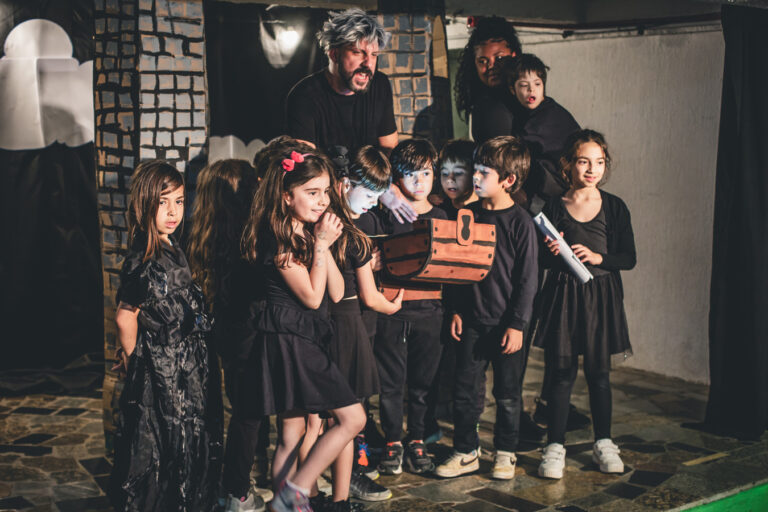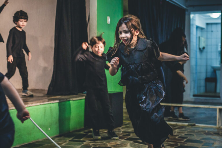 Na dia 31 de outubro, aconteceu a Mostra de Teatro da turma 13. O projeto tem como objetivo estimular a imaginação e a brincadeira em cena por meio do tema “Aventuras imaginárias”. A partir das ideias propostas pelas crianças, a apresentação se transformou em uma empolgante aventura repleta de ação, perigos e muita diversão. A imaginação realmente voou alto!