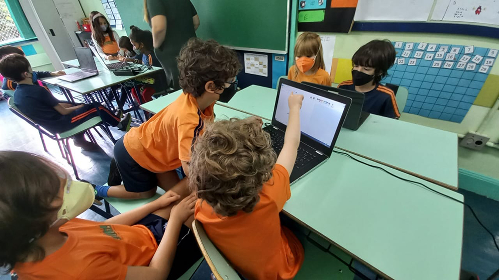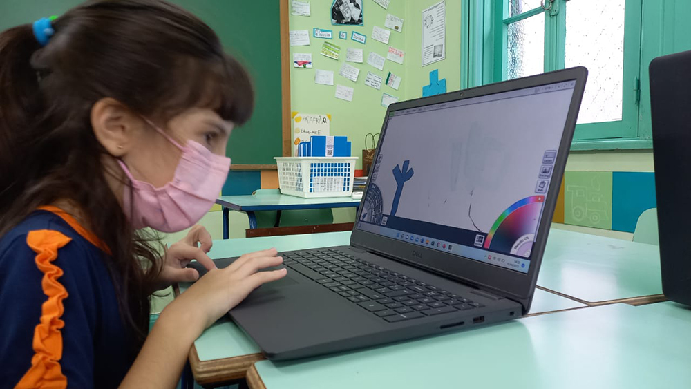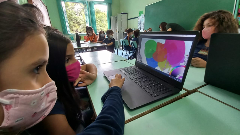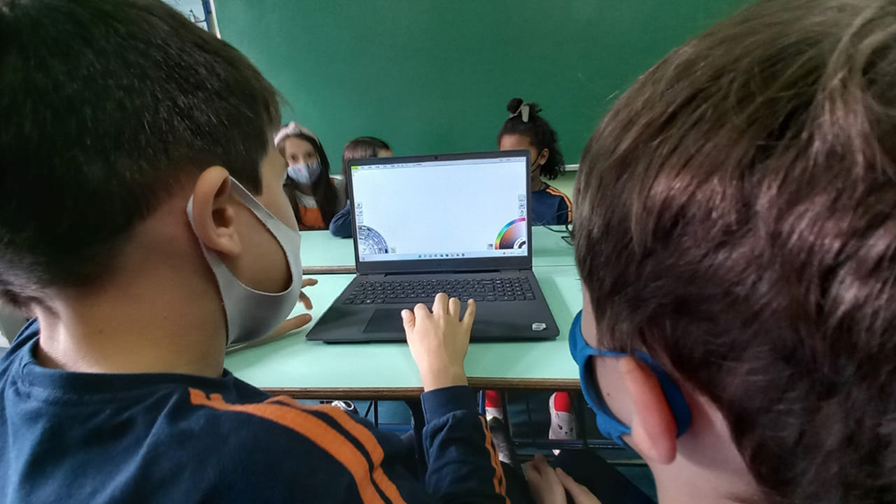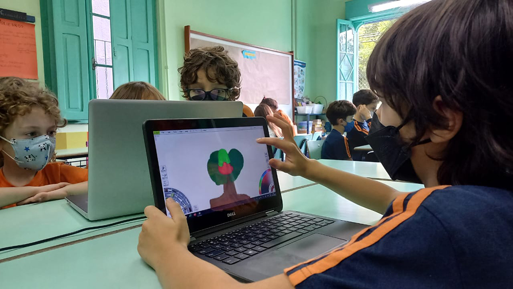 T22 – Aula de Informática Postado em 15 de abril de 202215 de abril de 2022 por Escola Projeto 0 A turma 22 aproveitou uma ferramenta de desenho/pintura que imita o real. Misturaram tintas, usaram pincéis e exploraram os diferentes recursos que o programa oferece.
