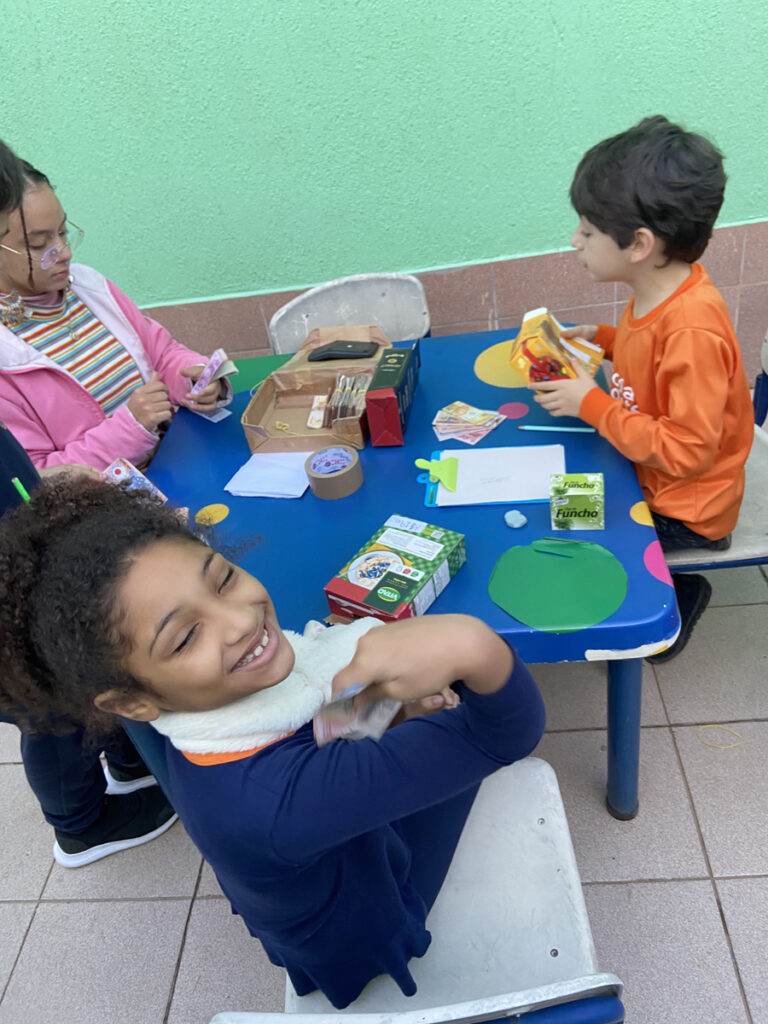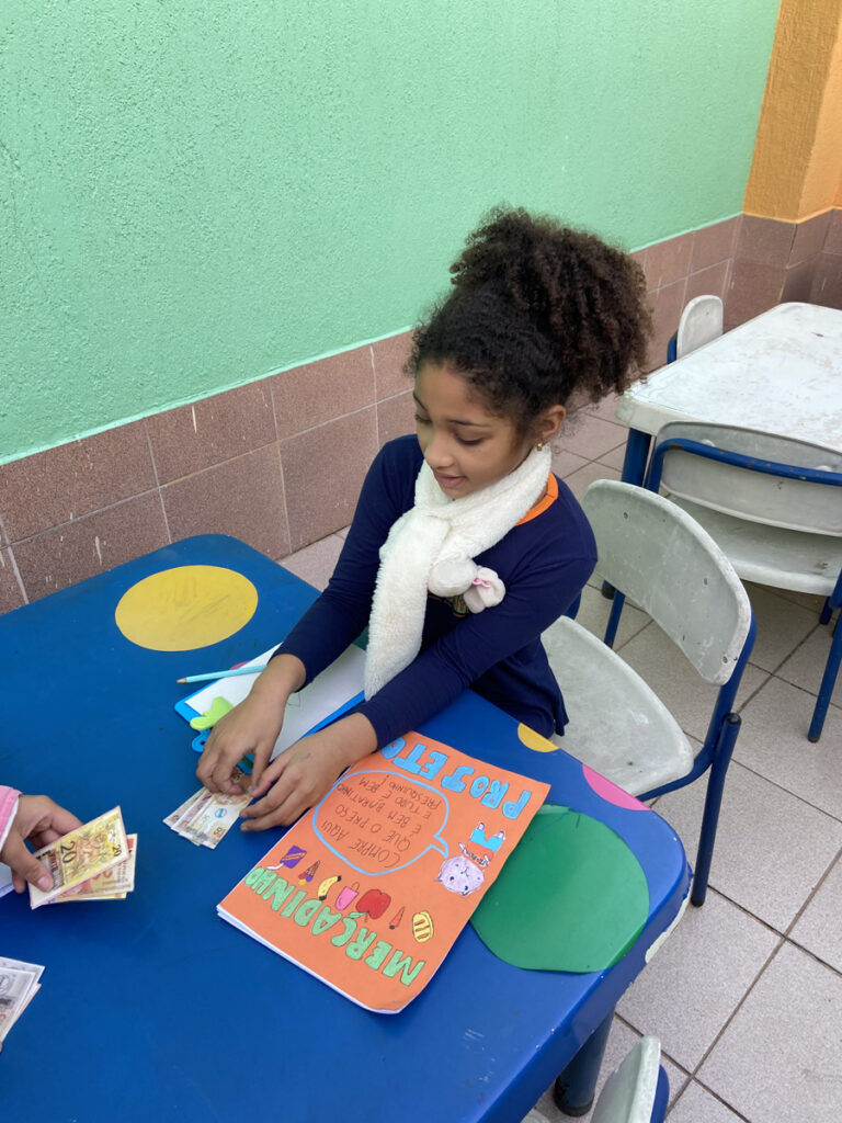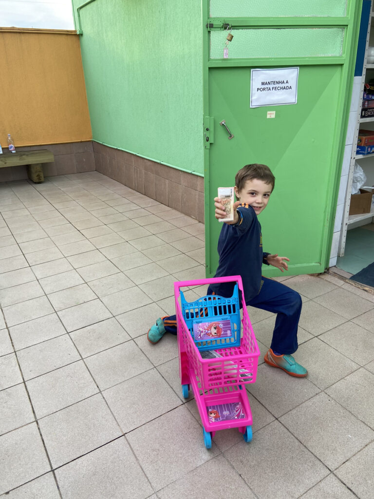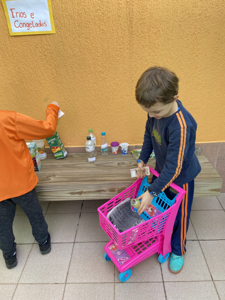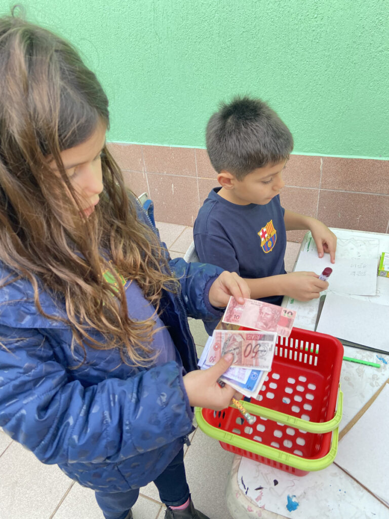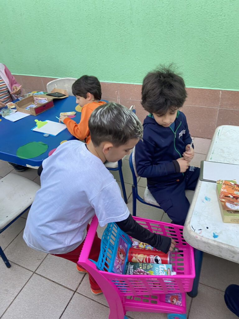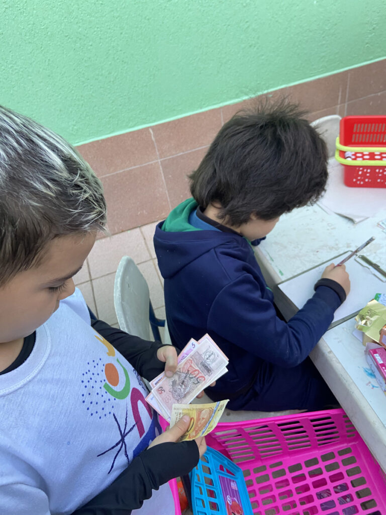 Nesse trimestre a turma 23 construiu vivências relacionadas ao Sistema Monetário, a partir do desenvolvimento da proposta de criar um mercadinho em sala de aula! A ideia era transformar o conteúdo aprendido em matemática sobre dinheiro, cédulas, moedas e noções de valor em uma prática concreta e divertida. Cada criança recebeu uma quantia simbólica em dinheiro fictício e teve a oportunidade de “comprar” produtos em nosso mercadinho montado especialmente para o Projeto. Além de exercitarem os cálculos de adição e subtração no contexto real das compras, os alunos (as) também aprenderam sobre consumo consciente, planejamento financeiro e a importância de fazer escolhas.
